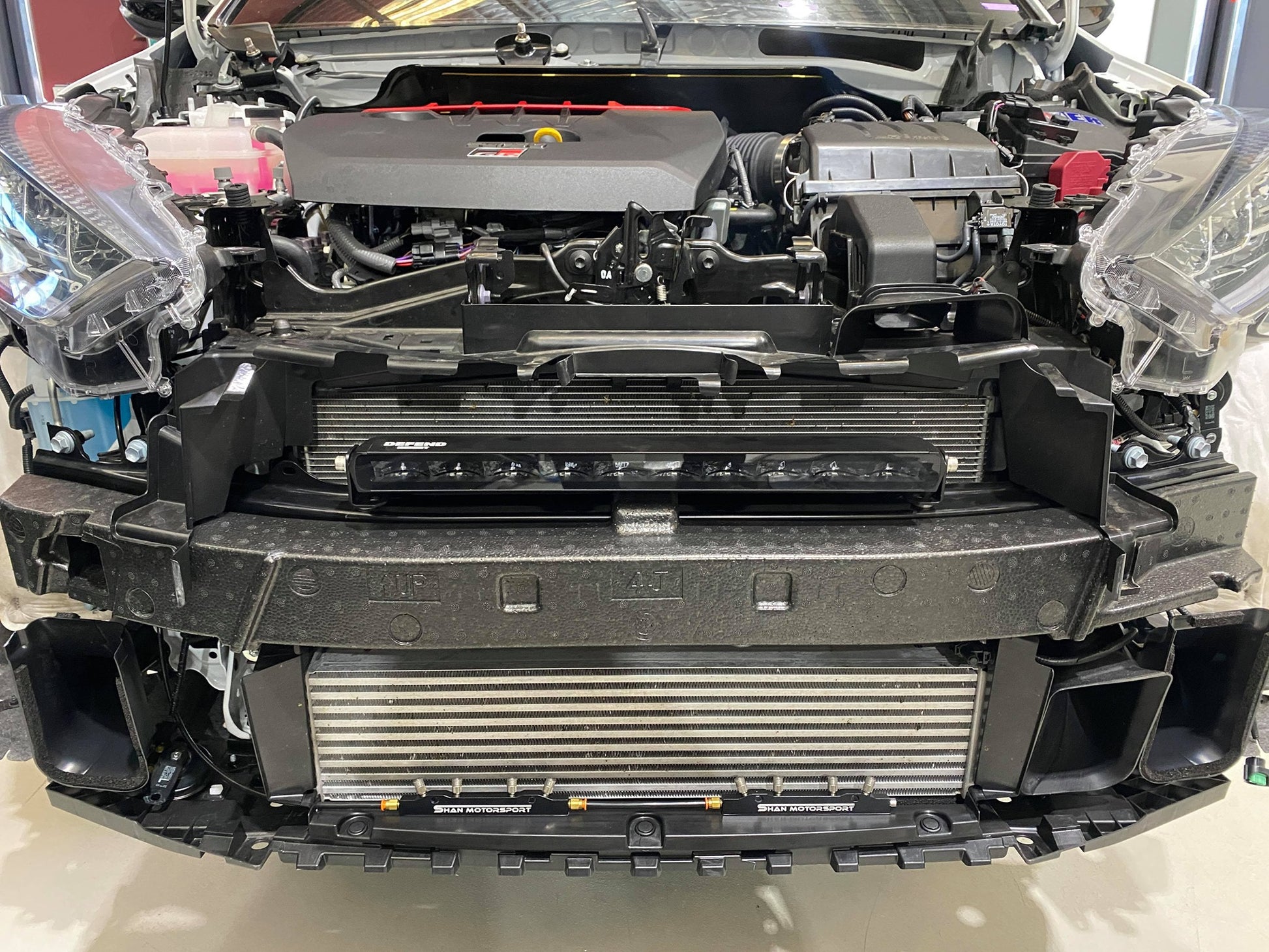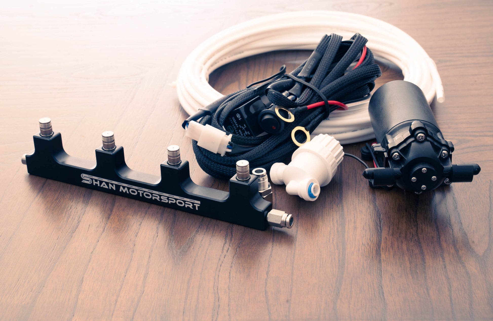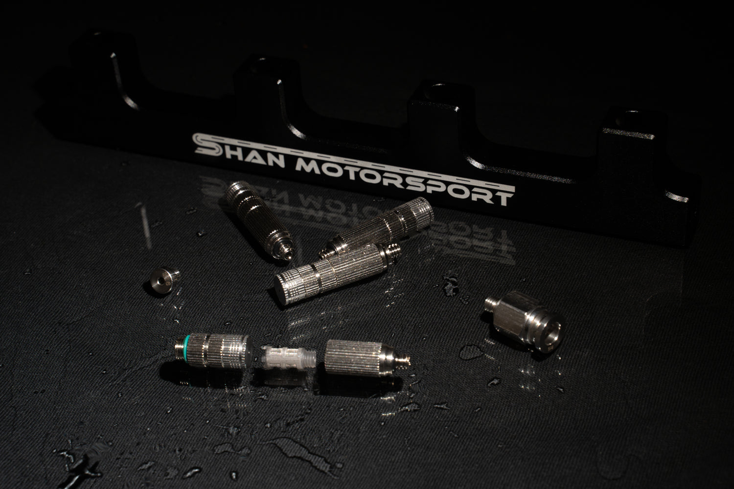 The HeX Sprayer consists of a quad nozzle water rail that when fed with a pressurised water feed, sprays a mist of water that cools the surface of an intercooler or any heat exchanger.